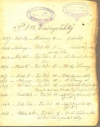 Bìa Kỷ yếu Tọa đàm (trái) và trang đầu tiên quyển Nhựt ký Trương Vĩnh Ký (phải) (Ảnh: STT Bến Tre)