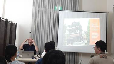 Nhiếp ảnh gia Nicolas Cornet chuẩn bị bắt đầu vào buổi tọa đàm