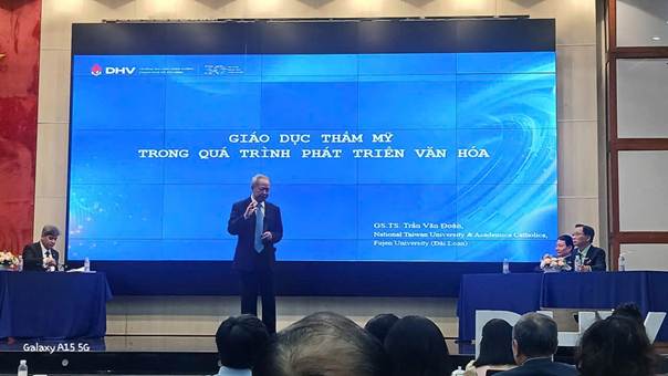 Các tham luận quốc tế tại hội thảo đã mang đến nhiều góc nhìn phong phú và gợi mở. Giáo sư, Tiến sĩ Trần Văn Đoàn (Đài Loan) nhấn mạnh vai trò của giáo dục thẩm mỹ trong đào tạo nhân lực, cho thấy rằng con người không chỉ được hình thành bằng tri thức khoa học, mà còn bằng cảm xúc, thẩm mỹ và khả năng cảm nhận cái đẹp.