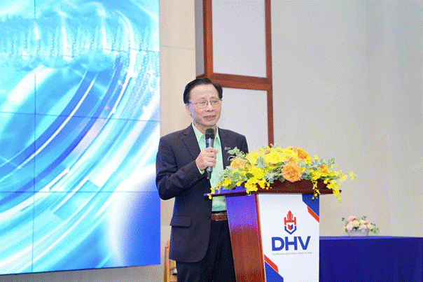 (GS.TSKH Trần Ngọc Thêm – Cố vấn Hiệu trưởng Trường Đại học Hùng Vương TP. Hồ Chí Minh phát biểu đề dẫn tại Hội thảo Khoa học Quốc tế DHV-2025 “Văn hóa và con người trong kỷ nguyên hội nhập – vươn mình”.)