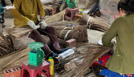 Hình 1: Các cô thợ bó chổi tại cơ sở chú Nguyễn Hoàng Tuấn