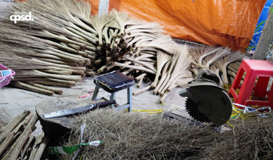 Theo chia sẻ của chú Nguyễn Hoàng Tuấn, cơ sở bó chổi của chú được thành lập khoảng 5 năm trước, với mong muốn khai thác hiệu quả nguồn lao động nhàn rỗi trong vùng, đặc biệt là các chị em phụ nữ nông thôn. Từ ý tưởng tạo thêm việc làm và giữ gìn nghề thủ công truyền thống gắn liền với cây dừa, cơ sở đã phát triển theo hướng linh hoạt, phù hợp với điều kiện thực tế của người dân địa phương. Đây cũng chính là nền tảng để cơ sở mở rộng quy mô và tạo điều kiện thuận lợi cho người thợ, góp phần duy trì sự bền vững của làng nghề truyền thống.