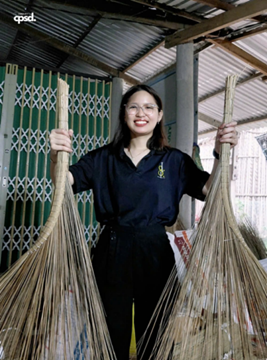 Hình 6: Sinh viên Phạm Thị Mỹ Quyên chụp ảnh với sản phẩm chổi cọng dừa