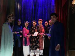 Anh Hồ Nhựt Quang (bìa phải) và và ekip của vở diễn Kiều Nguyệt Nga – gánh Cải lương Thiên Lý tối 16/11/2025.