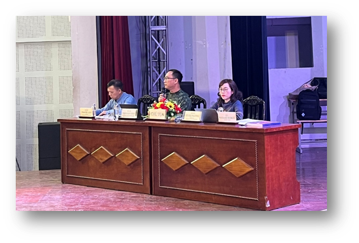 Hình 2: Ban Chủ tọa ở đầu cầu Tp. Hồ Chí Minh: TS. Trịnh Đăng Khoa (giữa), TS. Vũ Thị Phương và TS. Phạm Văn Luân (bìa trái)