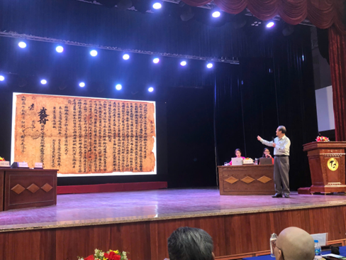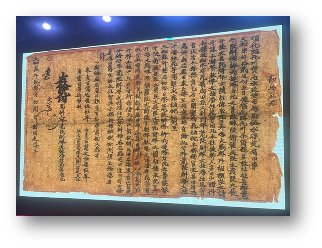 Hình 7: Từ Huế đến với Tọa đàm, Nhà nghiên cứu VHDG Nguyễn Thế giới thiệu tà liệu cổ trong cộng đồng