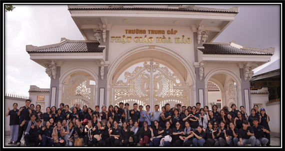 Hình 2: Đoàn tìm hiểu thực tế tại trường Trung cấp Phật giáo Hòa Hảo – Nguồn: Phạm