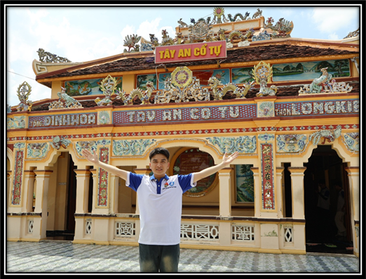 Đến với Chùa Tây An Cổ Tự ở Long Kiến, sinh viên choáng ngợp trước vẻ đẹp kiến trúc độc đáo. Ngôi chùa cổ này gắn liền với Đức Phật Thầy Tây An, nơi Ngài từng chỉ dạy môn nhơn đệ tử cách thờ phượng, lễ bái và tu hành, đồng thời lưu giữ tấm trần điều tượng trưng cho tinh thần vô vi và lòng bác ái.