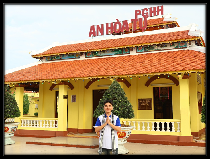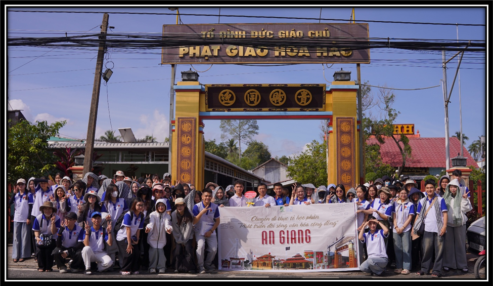 Điểm đến đầu tiên là An Hòa Tự, nơi được xem là cái nôi hình thành và phát triển của đạo Phật giáo Hòa Hảo. Tại đây, sinh viên được tìm hiểu về lịch sử ra đời đạo, tư tưởng “Học Phật – Tu Nhân” và các hoạt động từ thiện xã hội như xây cầu, cất nhà tình thương, cứu trợ thiên tai, hiến máu nhân đạo… Những hoạt động này minh chứng cho tinh thần “tốt đời, đẹp đạo” – một nét văn hóa cộng đồng gắn bó chặt chẽ với đời sống xã hội.