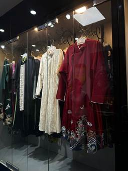 Hình 4: Áo dài được trưng bày tại cửa hàng. Ảnh: Phan Hồng Trâm