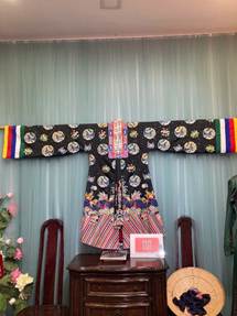 Ngay khi đến cửa hàng của Bác Năm Tuyền tại Quận 10 (cũ), chúng em được Bác rạng rỡ chào mừng với tiếp đón nhiệt tình. Bác ngỏ lời cho chúng em được mặc và trải nghiệm áo dài ngũ thân làm cho chúng em càng thêm háo hức và phấn khích. Khoảnh khắc được khoác lên mình tà áo dài, đội trên đầu chiếc khăn, chúng em cảm nhận rõ rệt từng sự tinh tế của đường kim, mũi chỉ, sự mềm mại của lụa và sự tự hào trong từng nếp vải. Như thể khoác trên mình cả một hành trình lịch sử của dân tộc, chúng em cảm nhận như được hóa thân vào những thập niên xưa cũ, với vẻ dịu dàng, đoan trang, thục nữ. Chẳng những thế, tà áo dài còn gợi lên trong chúng em bao niềm kiêu hãnh của dân tộc, khi sau biến thiên lịch sử vẫn giữ được tà áo của non sông đất nước.