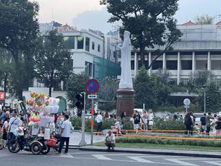 Mời quý vị hãy những nhìn tấm ảnh này, một chàng trai giữa trung tâm thành phố chiều 23/12/2025 khi mà mọi người chuẩn bị đón Giáng Sinh.