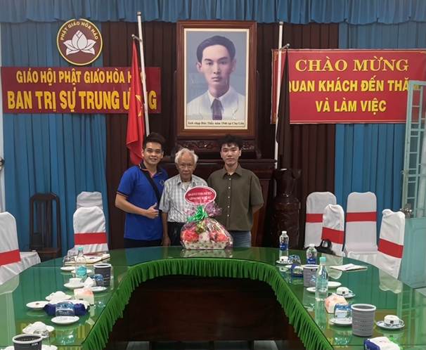 Hình 2: Đại diện BTC chụp hình với ông Nguyễn Tấn Đạt – Trưởng Ban thường trực Ban Trị sự Trung Ương – Nguồn: Nguyễn Thanh Hoài, 2025