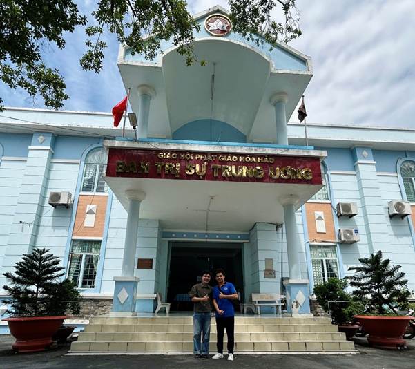 Hình 3: Sinh viên Trần Thanh Toàn (tác giả bài viết) và sinh viên Nguyễn Vũ Hiên chụp hình trước trụ sở làm việc của BTS Trung ương – Nguồn: An Hòa Tự